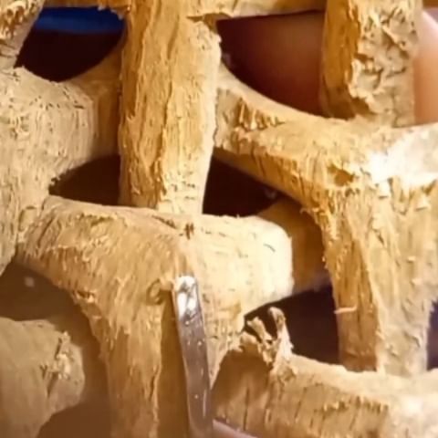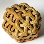 Speaking of the inside of hollow pieces, my current project is nearing completion. I have been working on it on and off for about 3 years now, and racked up around 200 hours or work so far. It takes the concept of my previous carving, Triaxiallia 12, and extends it to start from a 30-sided rhombic triacontahedron. You can see from the pictures that it is about the size of my hand, and I am trying to make the inside just as smooth as the outside!